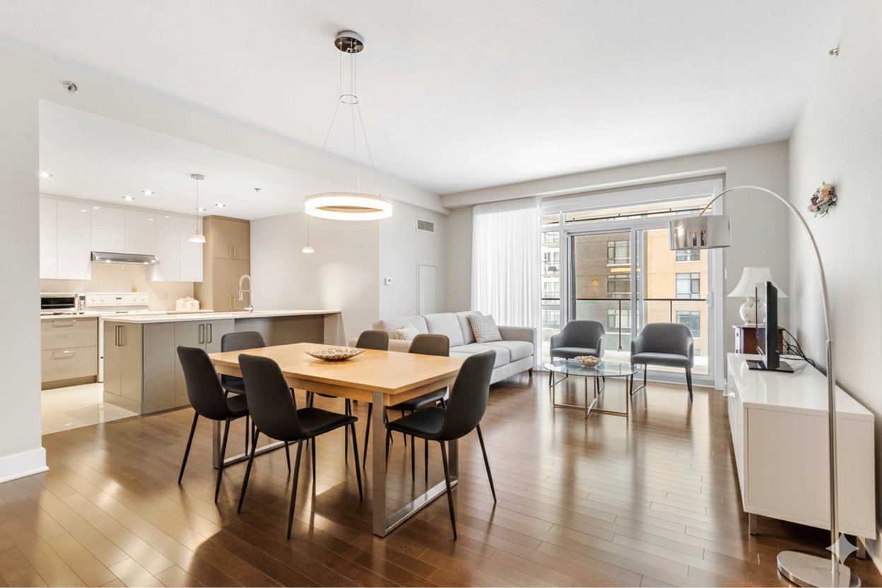 Superbe condo contemporain de 2 chambres et 1 salle de bain au coeur du Centropolis. Aire de vie ouverte inondée de lumière naturelle, donnant accès a un très grand balcon privé. Cuisine moderne avec grand îlot et finitions de haute distinction, avec comptoir en quartz. Chambre principale avec abondante fenestration sur 2 cotés,et grand garde robe walk-in. Deuxième chambre a coucher d'excellente dimsnsion. Espace buanderie dissimulé avec rangement.2 thermopompes murales,un stationnement intérieur,un rangement intérieur niveau garage, et accès à une salle de conitionnement physique moderne et se espaces éxterieures soignées. Venez Visiter !