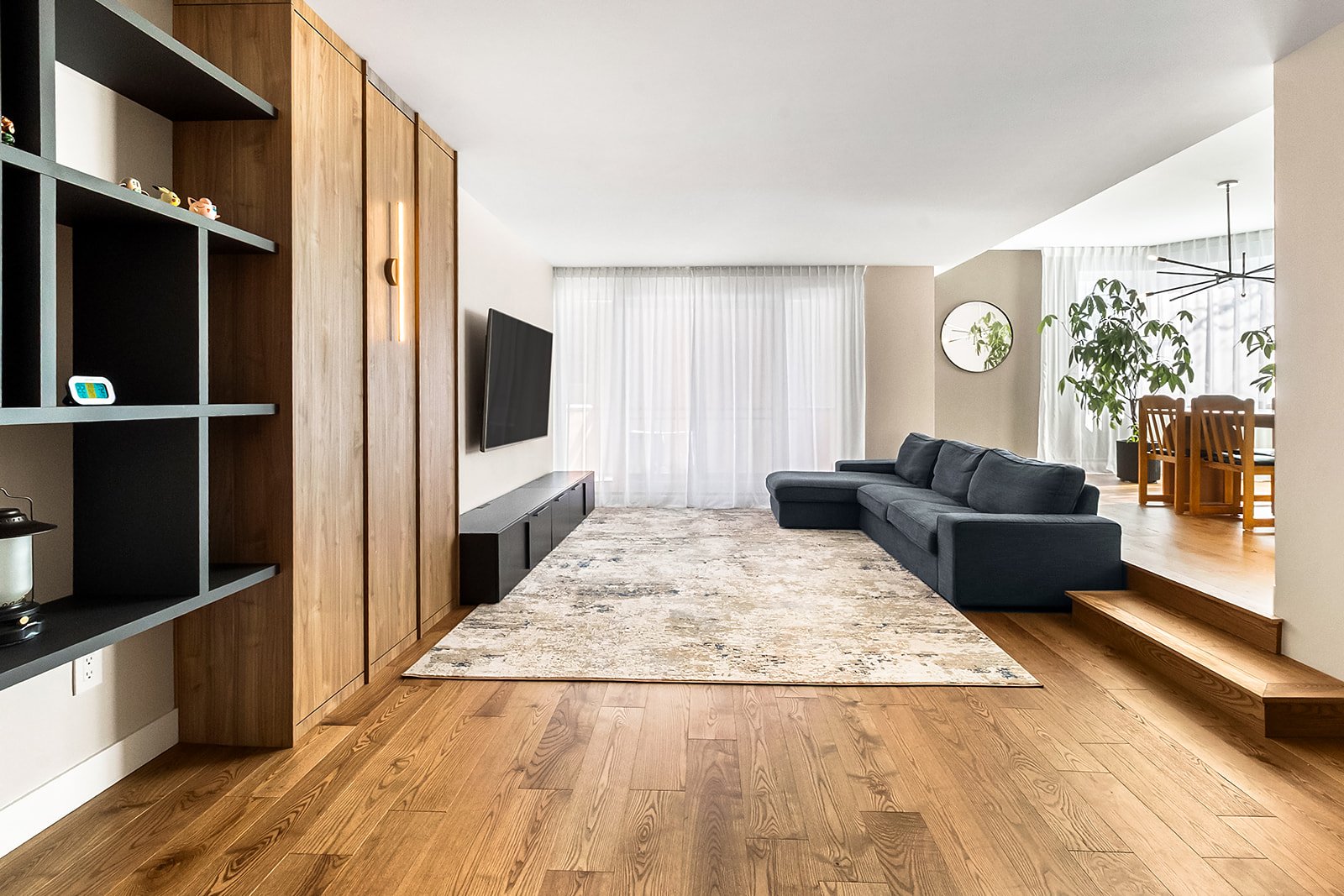 garde-robe intégré au salon ajoute une touche de